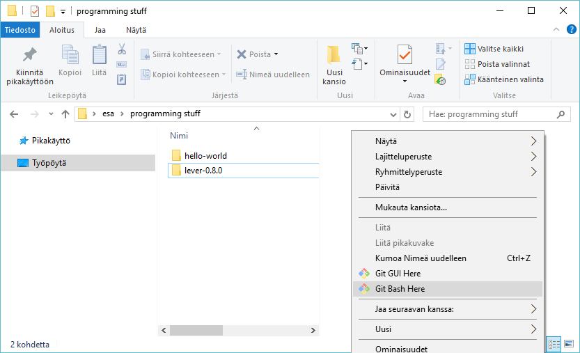 Next you should clone your online repository to your computer. Easiest way is to do 'Git Bash Here' then type "git clone " and paste the URL of your repository after.
