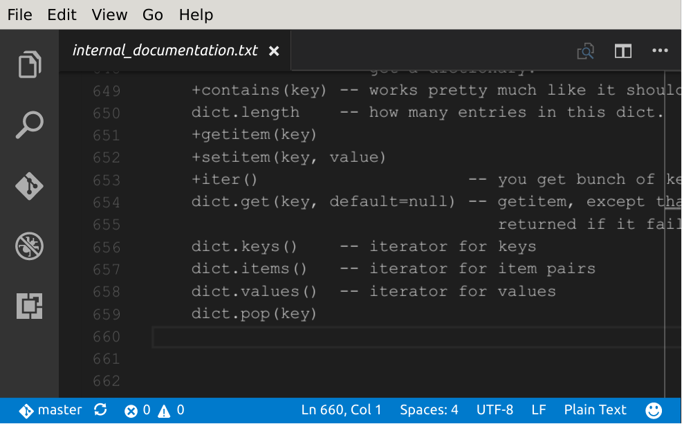 There are some really easy places to contribute when you look around. Lever is straight out missing functionality at places. For example, we are supposed to support most methods for base types that are in Python. But there are lots of omissions.