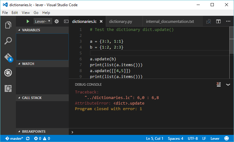 If you've worked this through, you should be ready to contribute on Lever development. Chances are you are ready to contribute to most other RPython -related open source projects, including PyPy itself.