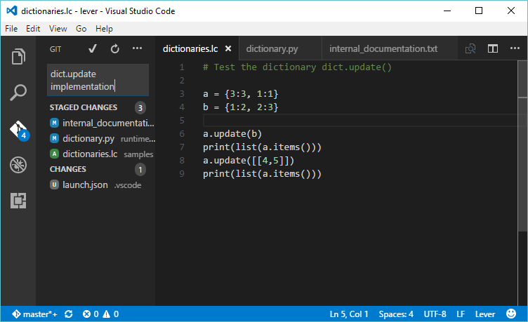 dict.update() is part of the list comprehension elements in Python. Lever also appreciates list comprehensions as they are very expressive constructs.