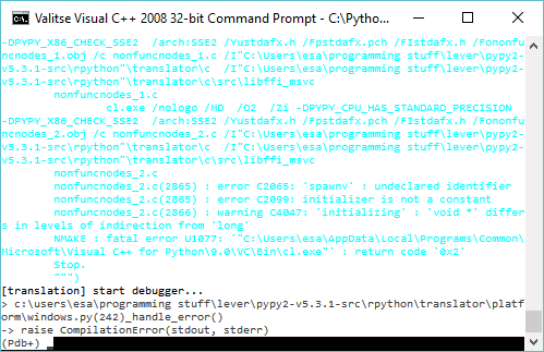 Since the introduction of libuv and zlib, this guide is a bit outdated. You may need to also read the pypy documentation to get this project compiled: Translating on Windows