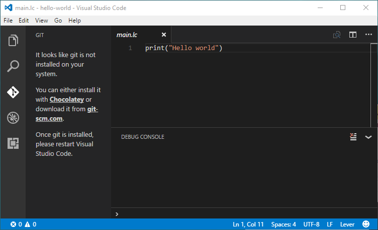 In the left tab you've got this diamond shaped symbol, when you press it tells you 'git' is not installed.