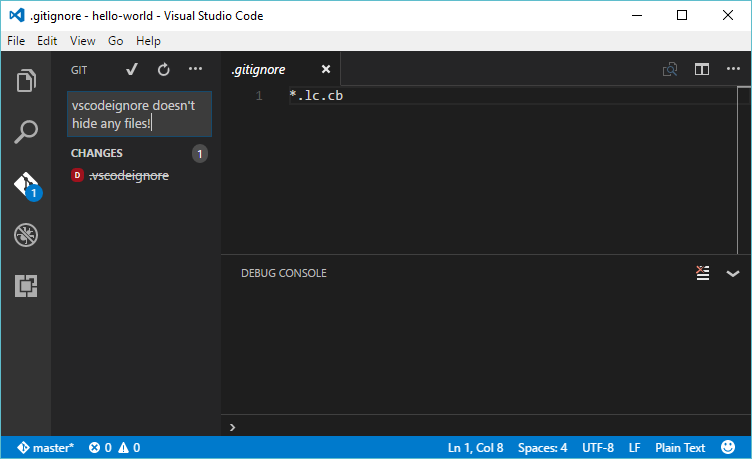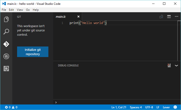 Now you have a git repository and the git tab is active. It's showing up the changes that haven't been committed to the repository.