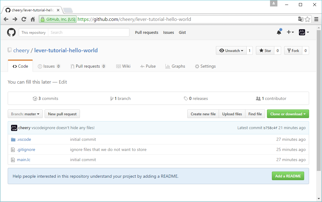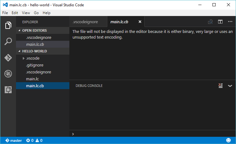 If you've run a program with lever, you got one right there named 'main.lc.cb'. To ignore all files with lever bytecode file extension, add the following line '*.lc.cb' to new file '.gitignore'