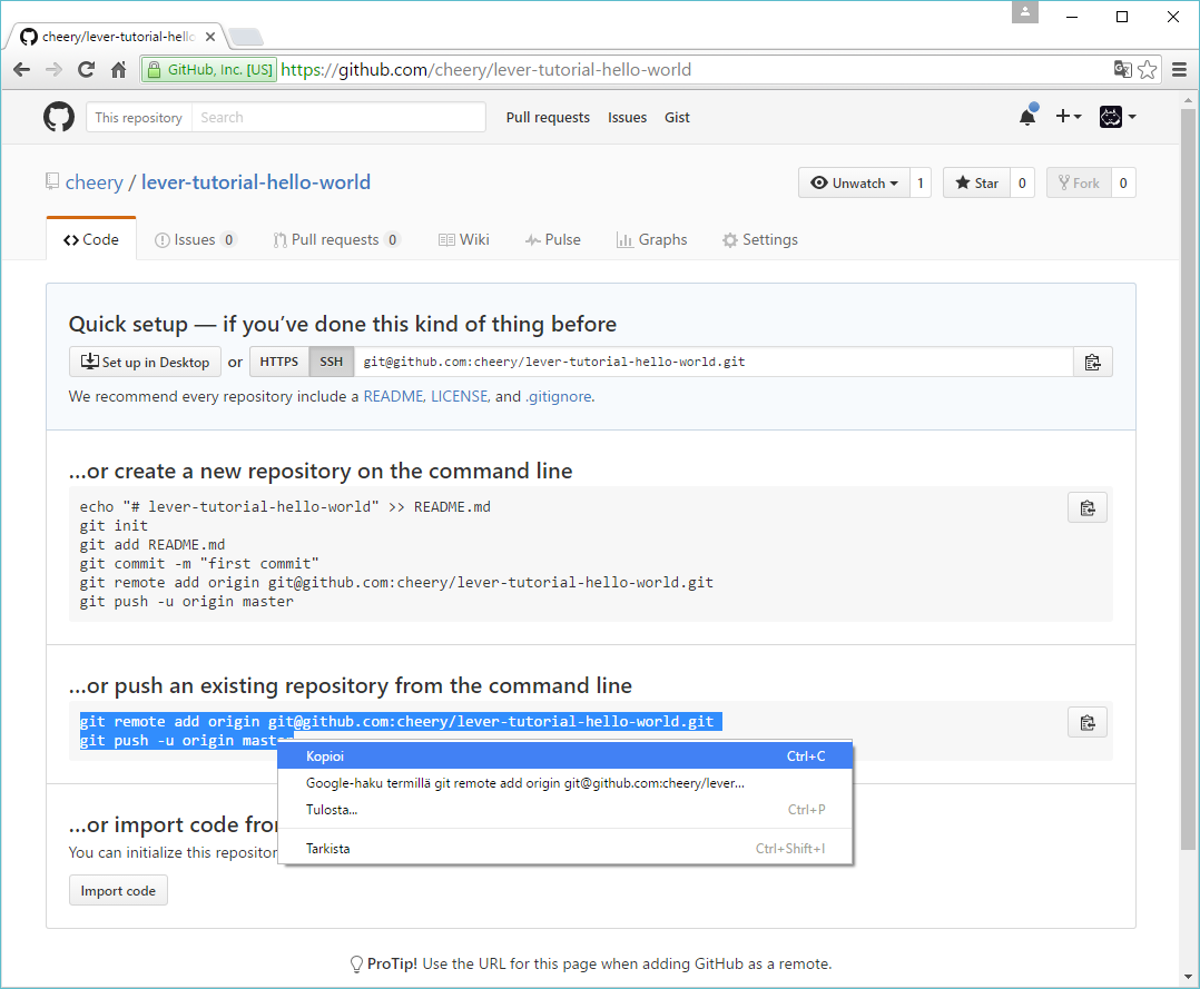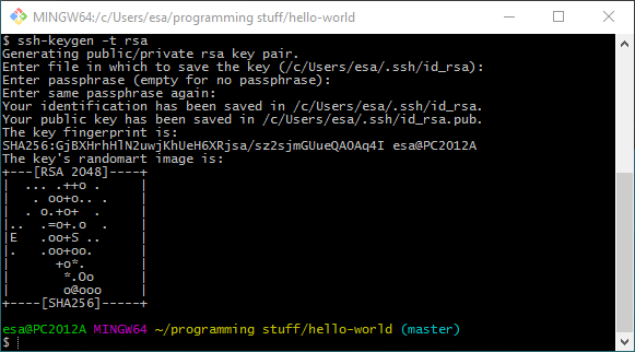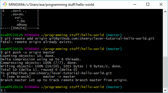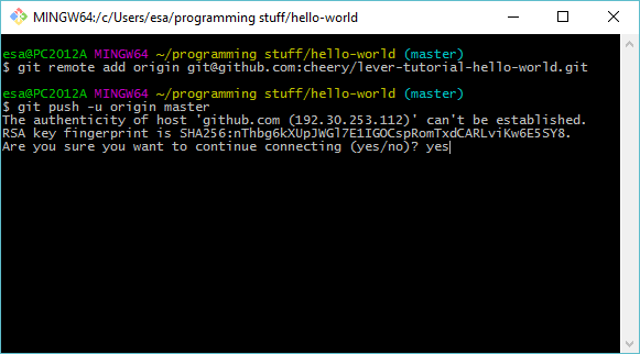 I assume that the flow is as follows: You install Git for Windows, the hello-world project is added to git, you create a repo on the GitHub side, and then you make changes and commit. Is it something like this? Make the flow clearer to the casual reader.