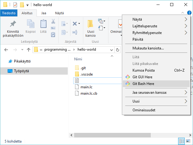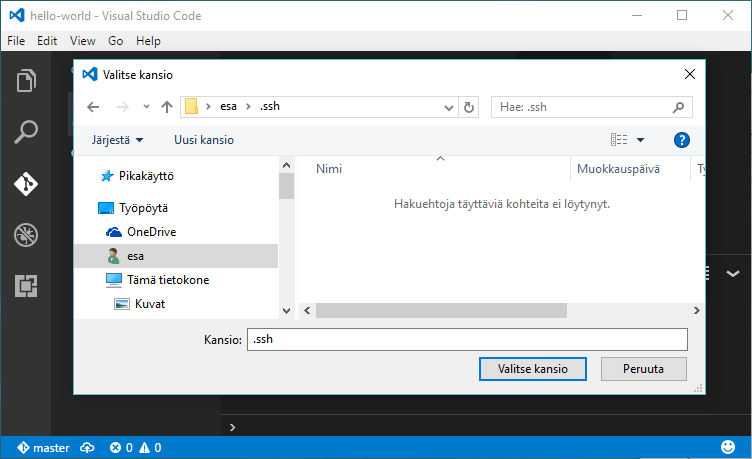 If you read through the getting started with vscode -guide You created a hello-world folder. Open that folder with the 'File' -menu. If someone has deleted that directory, it's okay. Just create a new directory and put something there. But open a directory anyway, it will become a git repository in this guide.