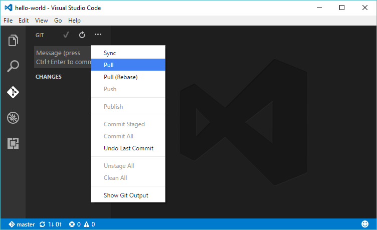 After a while also your VSCode recognizes this. You can notice you will be able to 'Sync', 'Pull' and 'Push' from the menu aside the 'do a barrel roll!' -button.
