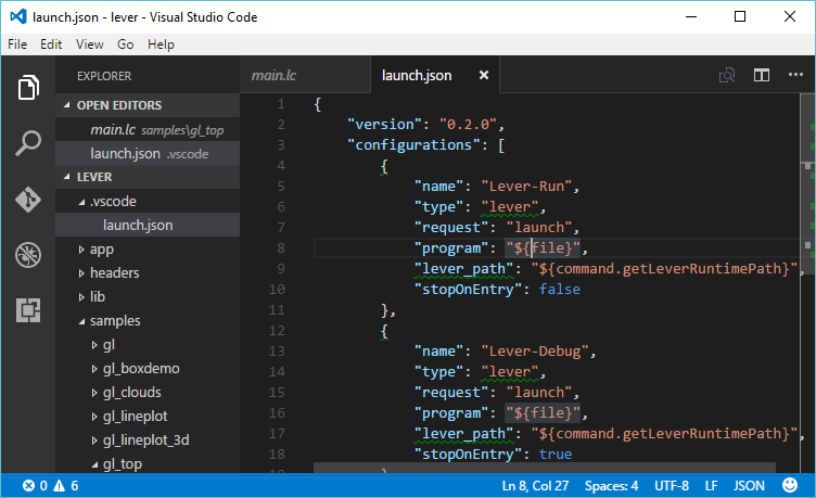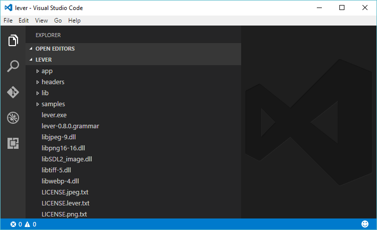 To try out samples, pop into the lever runtime with the 'File' -> 'Open Folder'