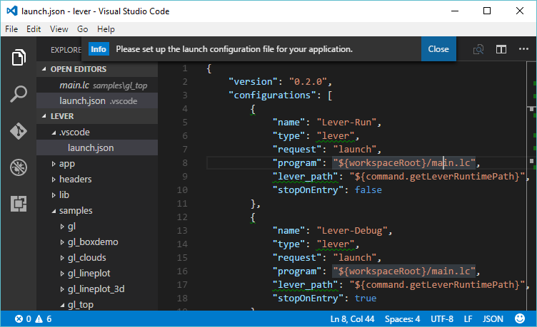 Then press F5, yes, runtime doesn't have .vccode for this purpose. Fortunately VSCode creates it for you when you pick "Lever Runtime".