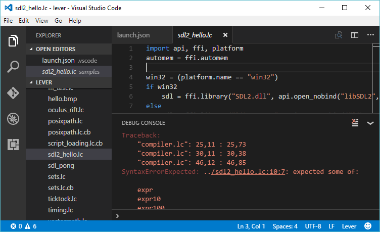 Now you can finally select some file ending with ".lc" and run it!